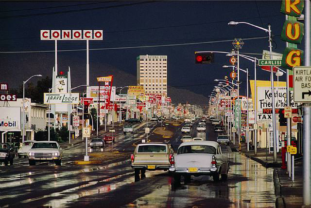 In painting, particularly those showing huge expansive landscape vistas, there’s a tendency for the viewer not to settle on any one particular part of the image, instead the viewer is encouraged to explore the whole of the work. A good example of this in photography is Ernst Haas’ famous street scene entitled “Albuquerque“. There’s so many elements and subjects fighting for the viewers attention that the viewer never dwells on any one thing for more than a few seconds before the next thing attracts their attention, then the next, then the next…
